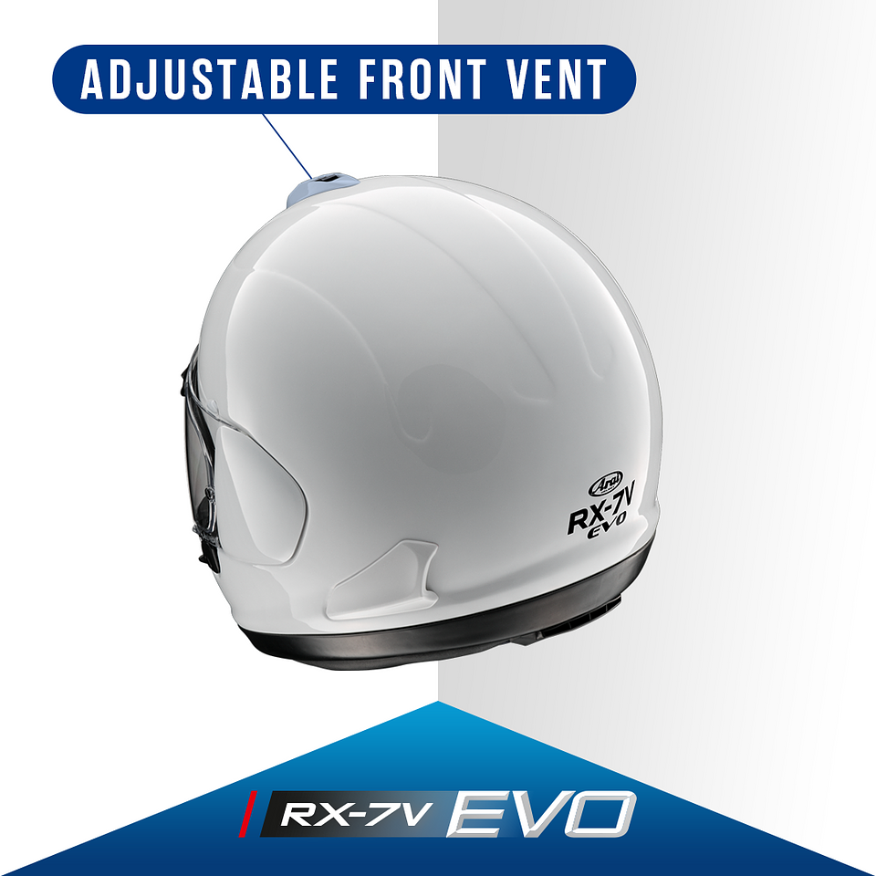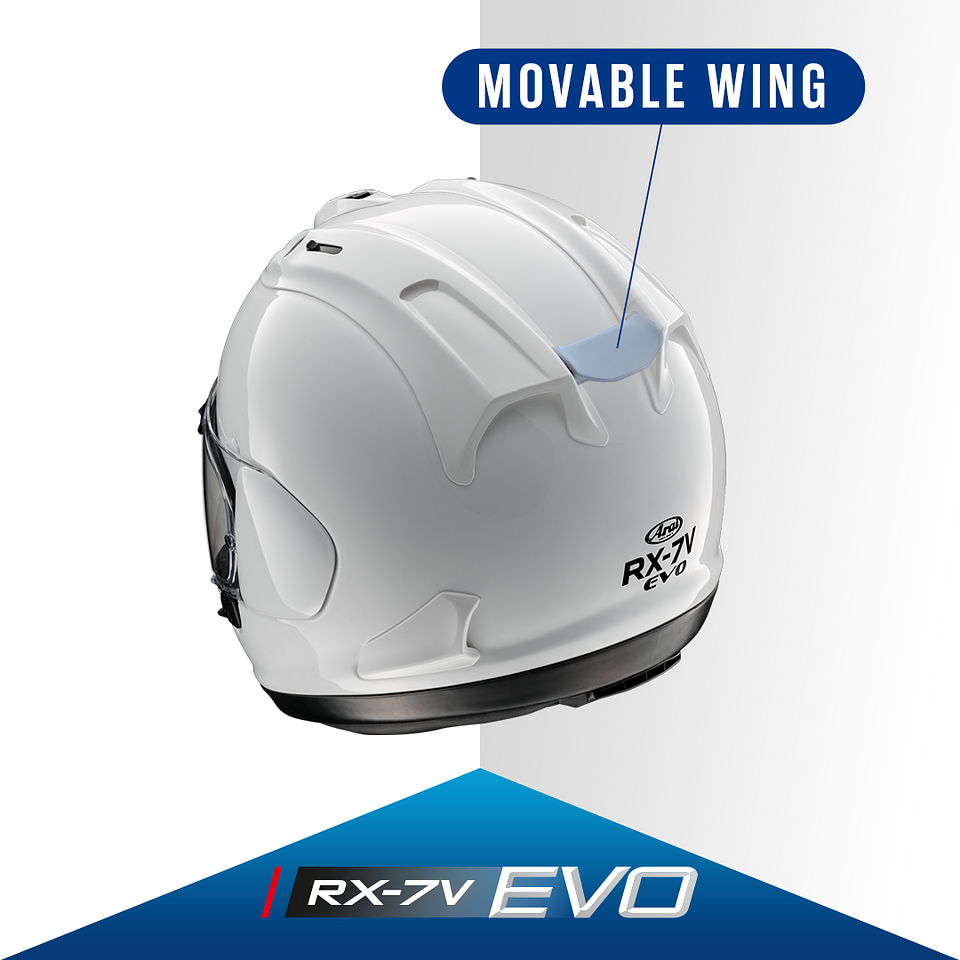 The Arai RX-7V EVO vents and spoiler are designed to break off in an impact, ensuring that the Glancing Off performance of the shell is not